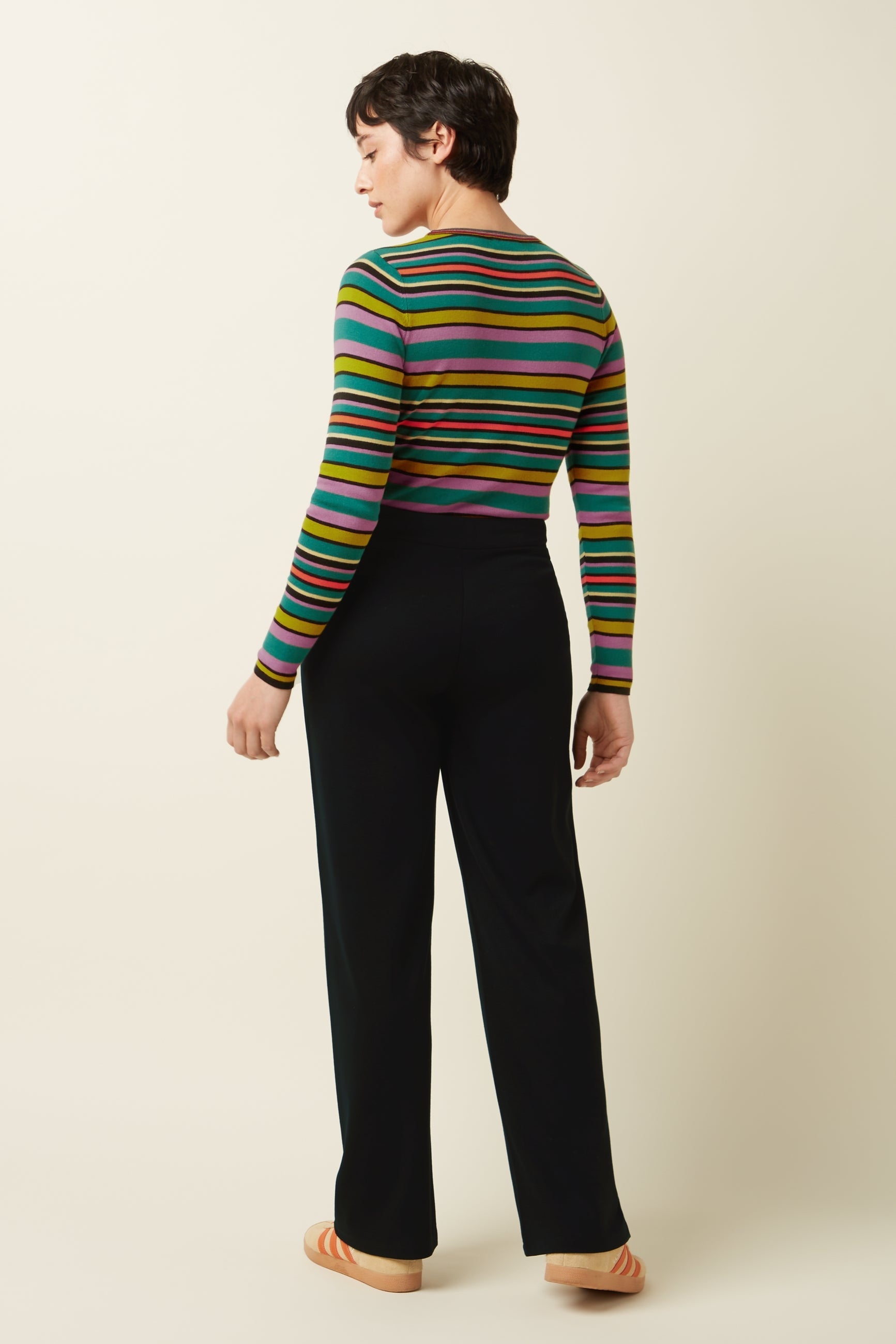 Agnes Ozark toppurinn er úr teygjanlegu, mjúku bómullarefni með löngum ermum og hringlaga hálsmáli. Frábær kostur til að bæta við skemmtilegum blæ í fataskápinn.