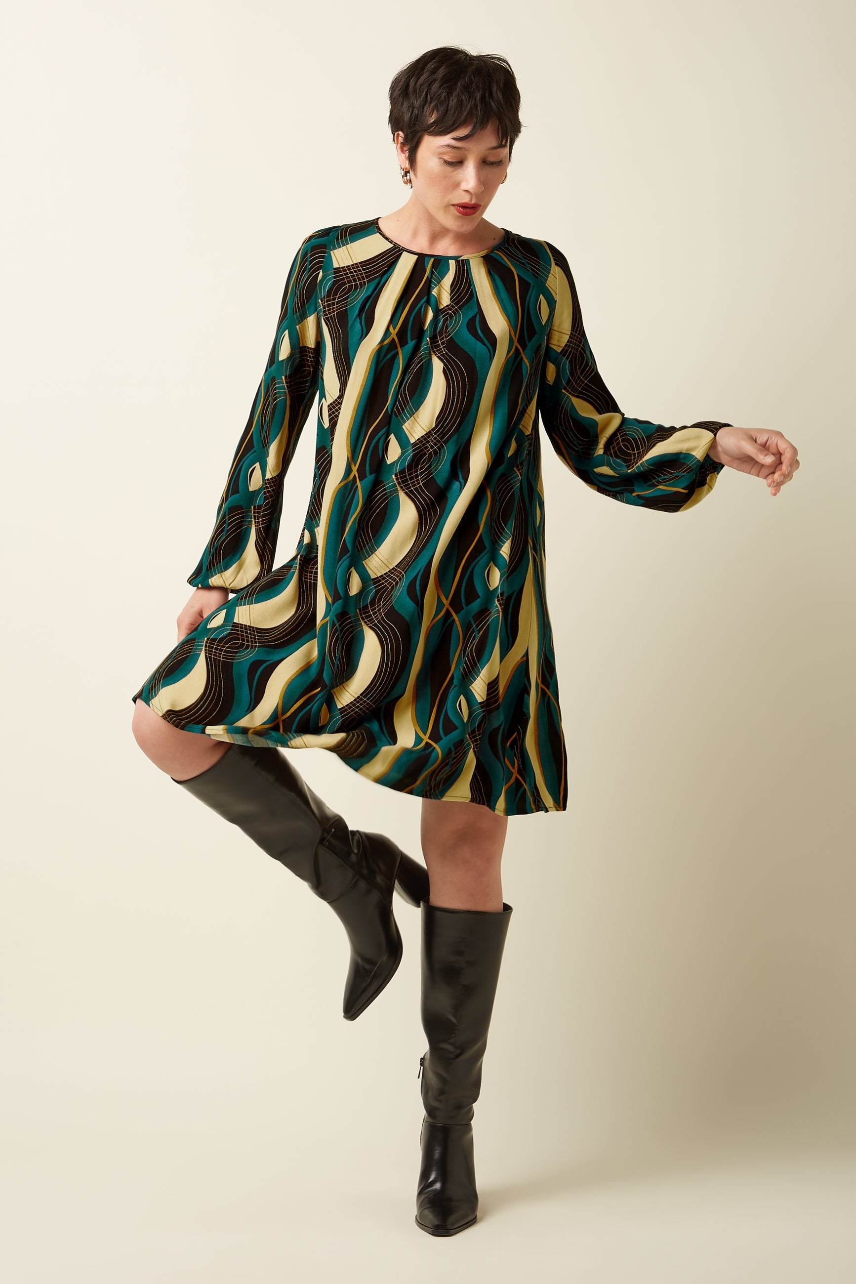Laura Elysse kjóllinn er ekta 60's kjóll með púffí ermum og skemmtilegum rykkingum frá hálsmáli. Æðislegur partýkjóll.