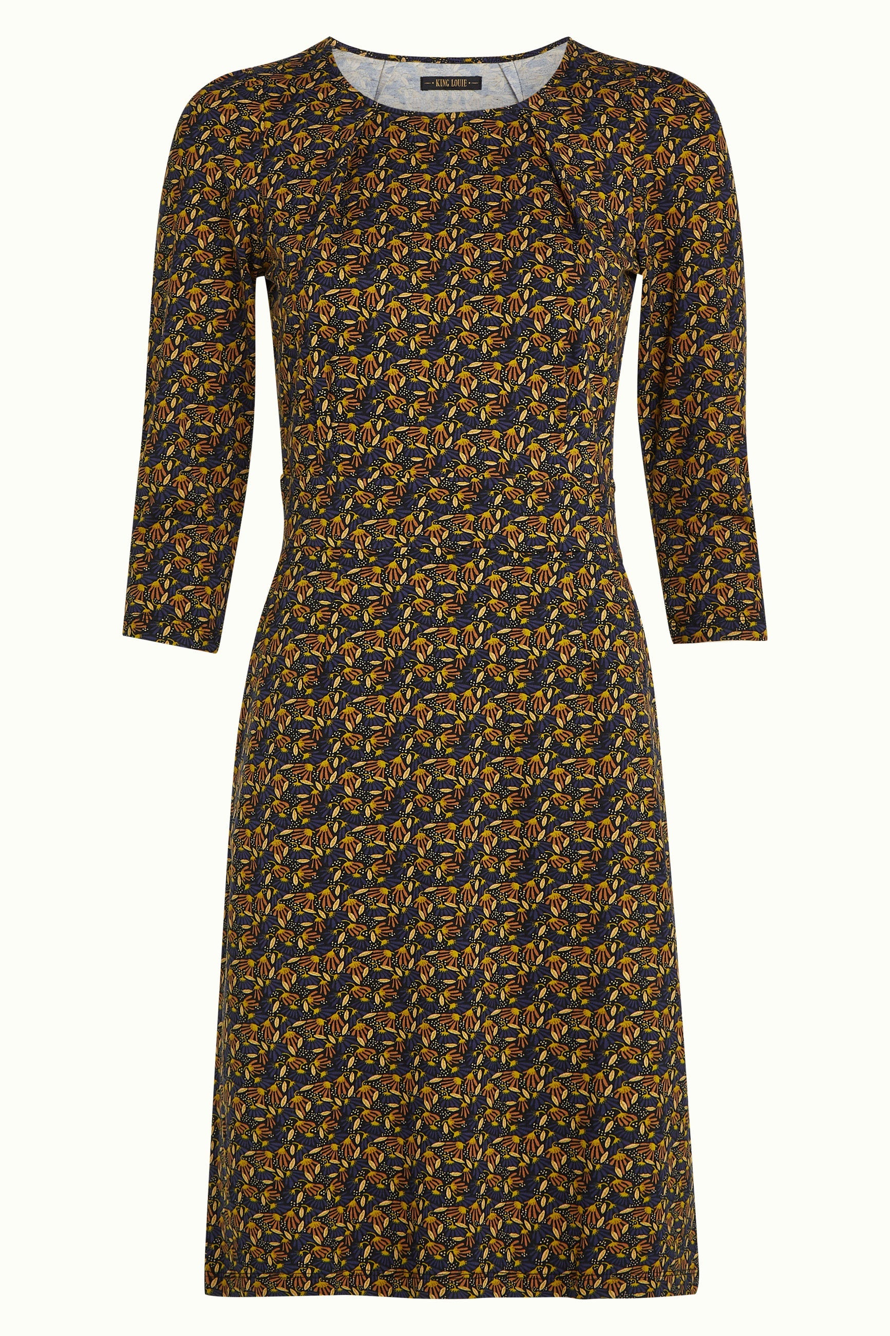 Mona kjóllinn er með hringlaga hálsmáli, fíngerðum fellingum að framan og þægilegum hliðarvösum. Fast mittisband undirstrikar mittið, en Mona kjóllinn er hannaður til að passa þétt og falla niður á hné. Hann sameinar stíl og þægindi fyrir daglegt notkun jafnt sem spari.
